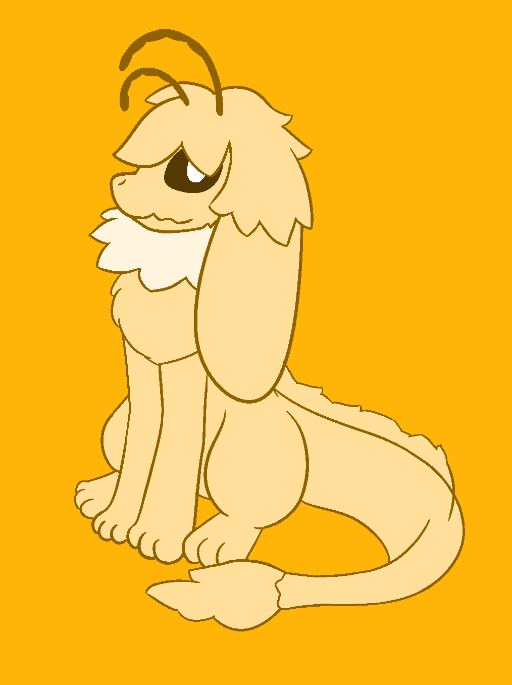 Older version, flat colors and a solid color background. His head is further back, neck fluff is spiky and his lop ears are bigger.
